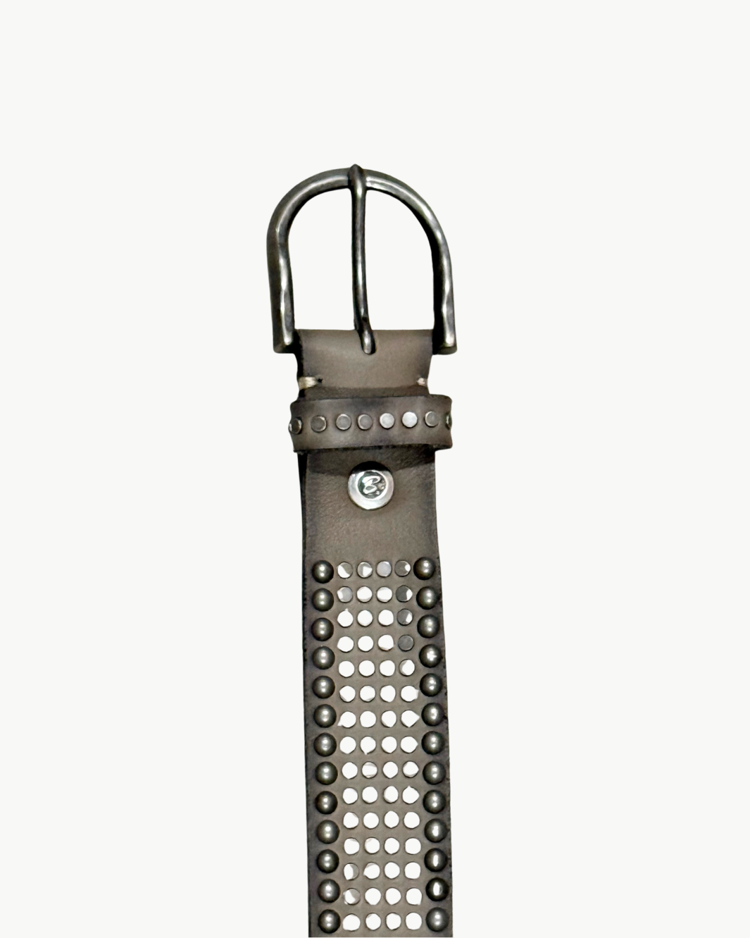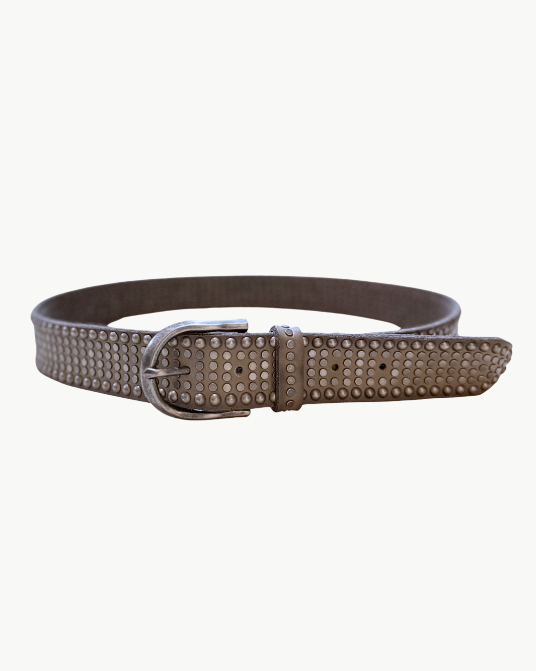 The Riva Belt in taupe brings a bold, statement finish to everyday styling. Crafted from supple leather and detailed with gunmetal multi studs throughout, this piece balances edge and versatility. The wider silhouette and substantial hardware make it an effortless way to elevate denim, trousers, or layered looks.
