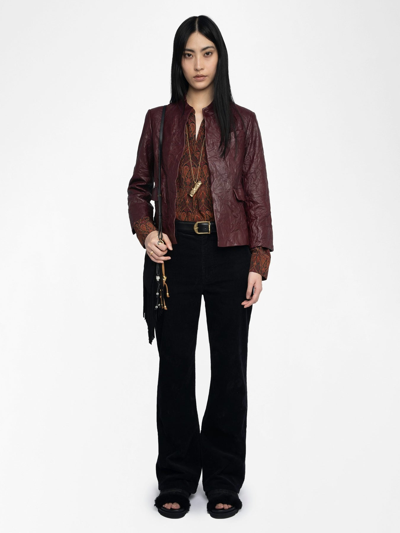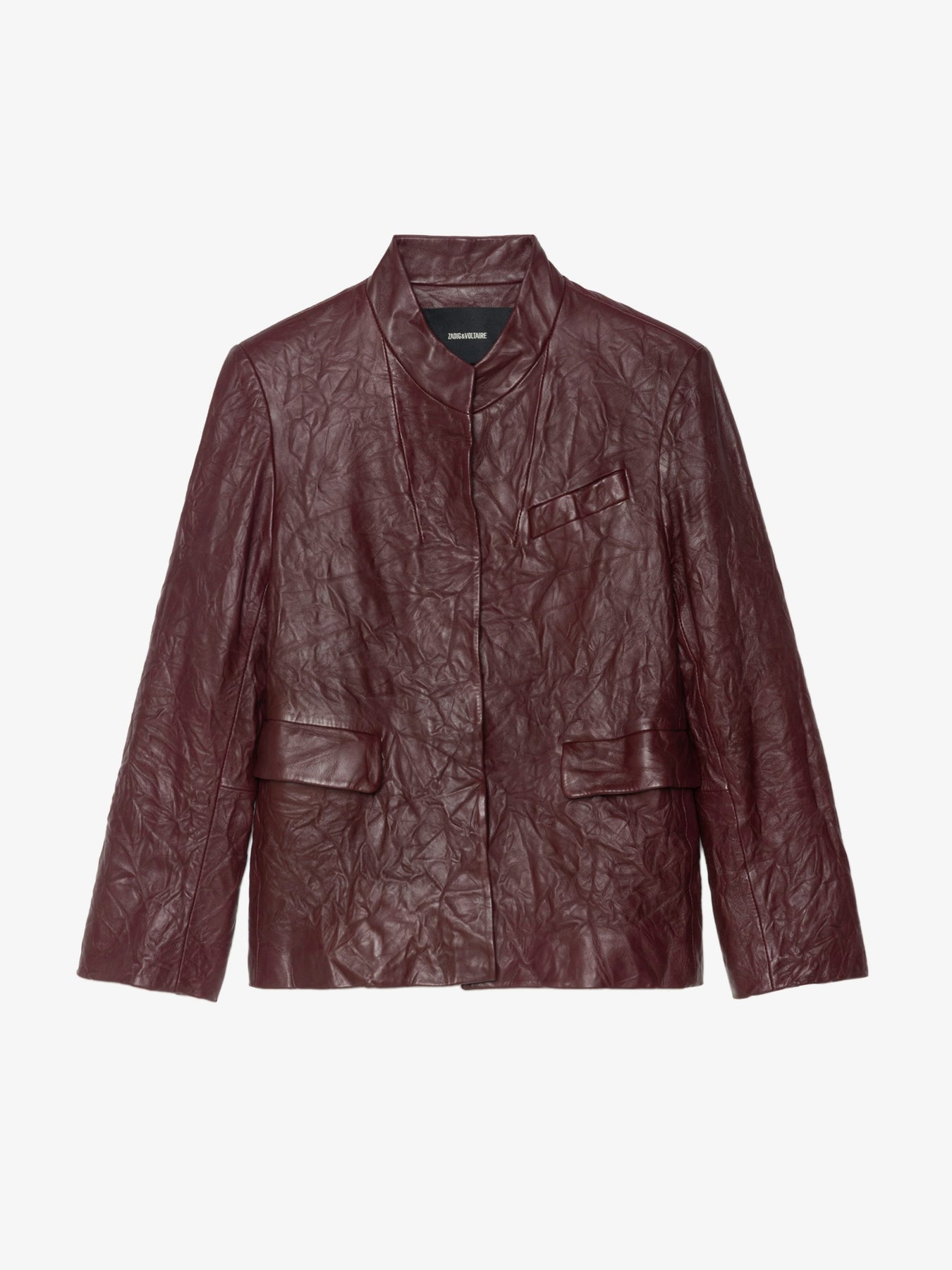 A striking mix of structure and edge, the Veryn Crinkled Leather Blazer captures Zadig & Voltaire’s signature rock-chic refinement. Crafted from supple lambskin, the house’s emblematic crinkled leather is created through a multi-step artisanal process, giving each piece its own distinctive character and sheen. Designed for a sleek, fitted silhouette, this unbuttoned blazer blends effortless cool with impeccable craftsmanship.