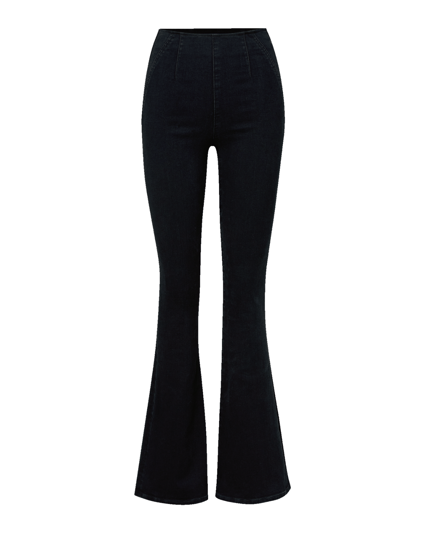 A sleeker interpretation of the brand’s best-selling jean, the Beverly Off-Duty is crafted from premium super-stretch denim in a deep inky black wash. Retaining the flattering high-rise and elongating skinny-flare silhouette, this reimagined style features a streamlined pull-on design with no hardware or pockets, creating a smooth, clean front. The result is effortless sophistication with all-day comfort—perfect for pairing with a simple tee or tailored jacket.