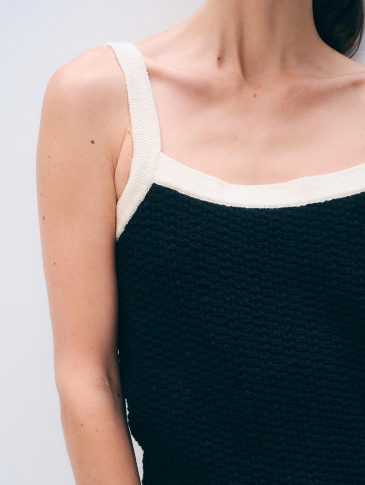 This sweater tank offers a streamlined, modern take on a knit essential. Designed with a flattering scoop neckline and a clean, close-to-the-body silhouette, it delivers an easy balance of structure and softness. A versatile piece that works effortlessly on its own or layered, it brings understated polish to everyday styling.