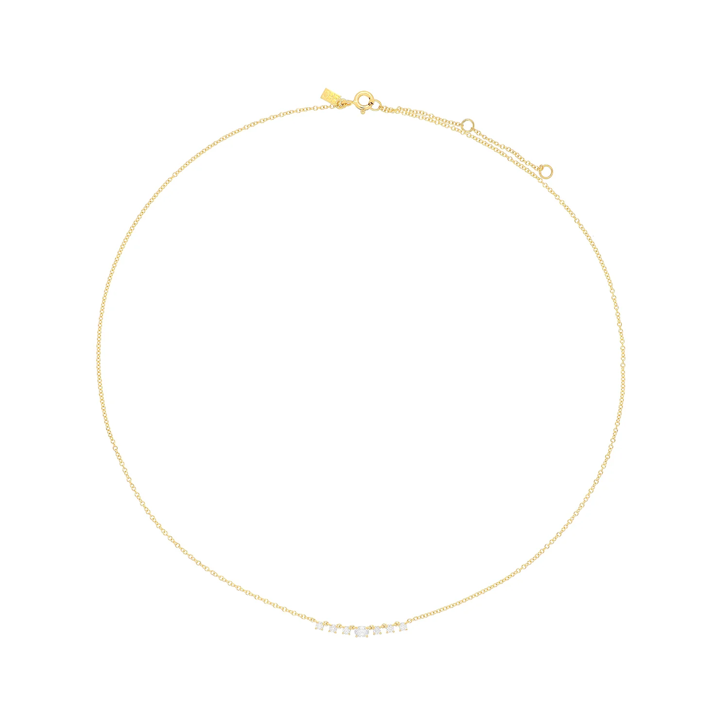 The Diamond Carrie Necklace from EF Collection gets your diamonds into one well-rounded row. Designed with 6 round diamonds on either side of a central oval diamond, this timeless piece is an eye-catcher.
