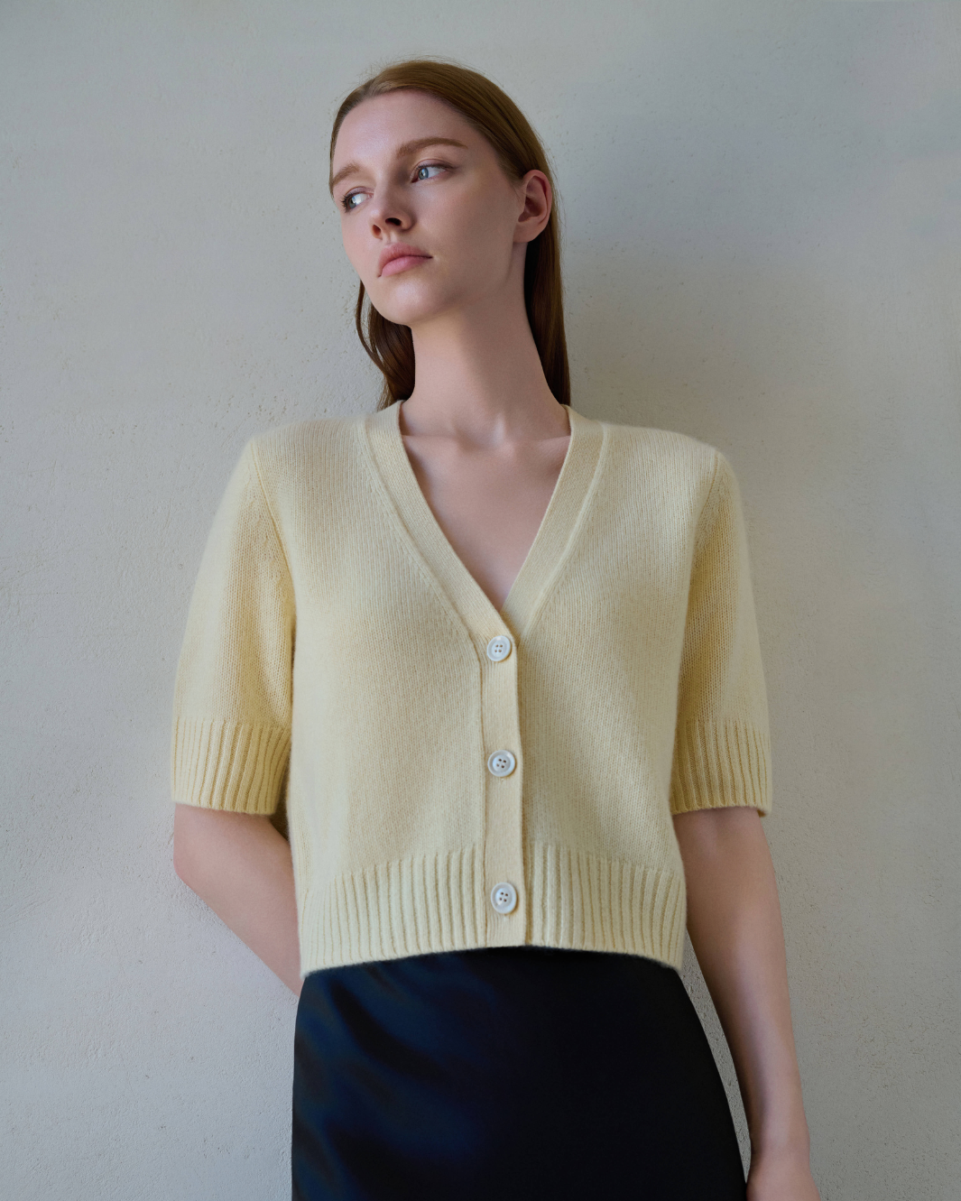 The Elodie Cardigan is a refined cashmere sweater designed with a timeless silhouette and effortless versatility. Featuring a flattering V-neckline, short sleeves, and a classic button-front design, this cardigan sweater offers a polished yet relaxed look that transitions seamlessly from day to evening.