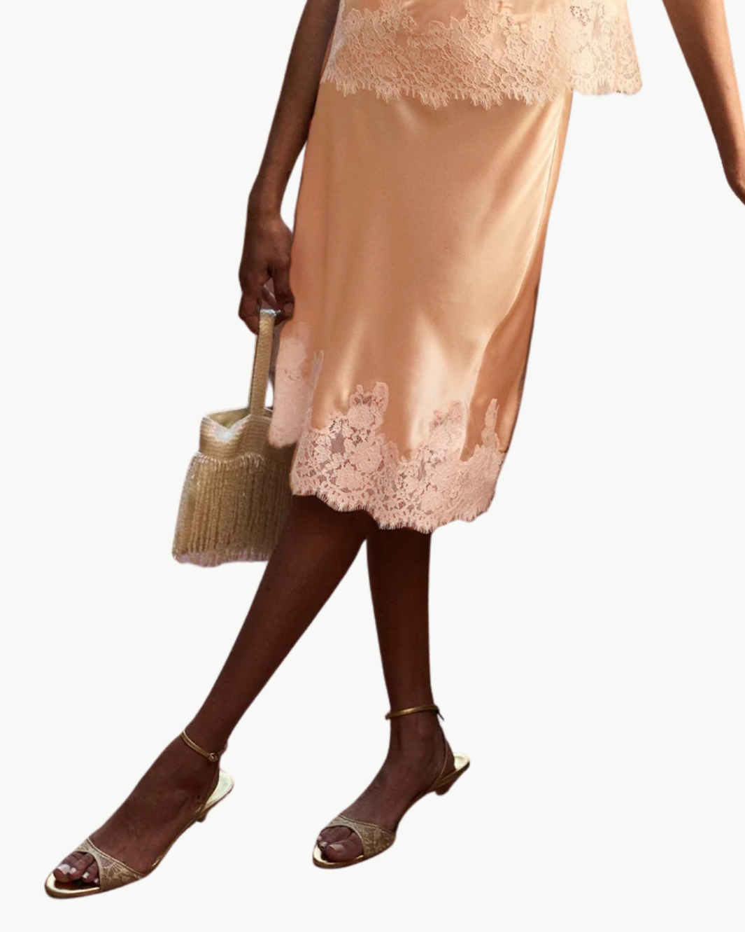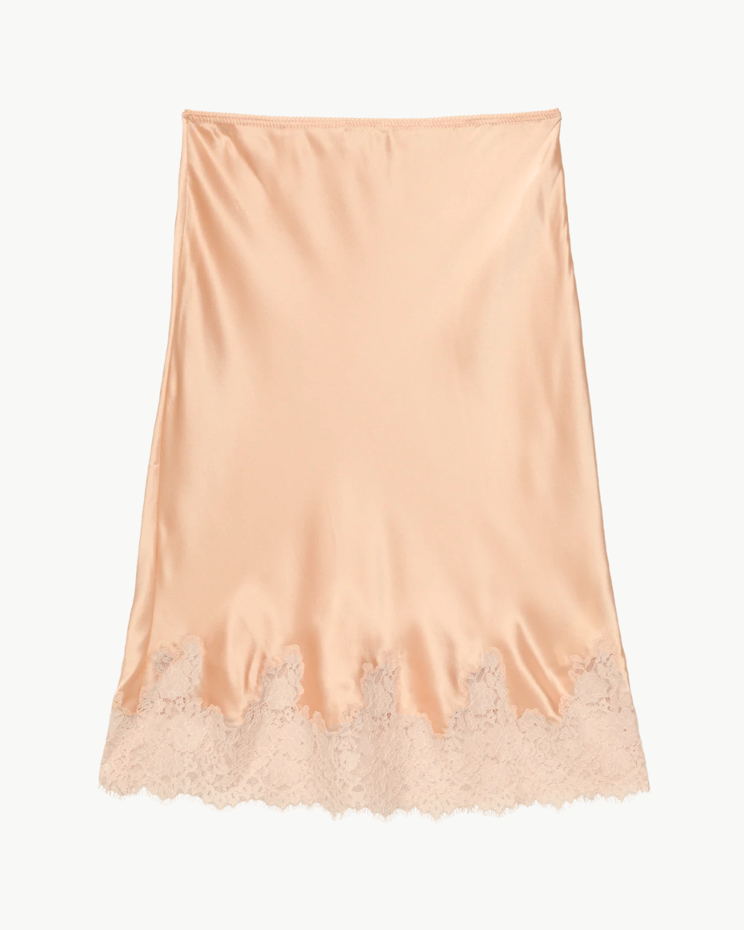 Cut on the bias from buttery silk satin, the Elowette Skirt is a midi-length silhouette finished with delicate scalloped elastic at the high waist and floral lace along the hem.