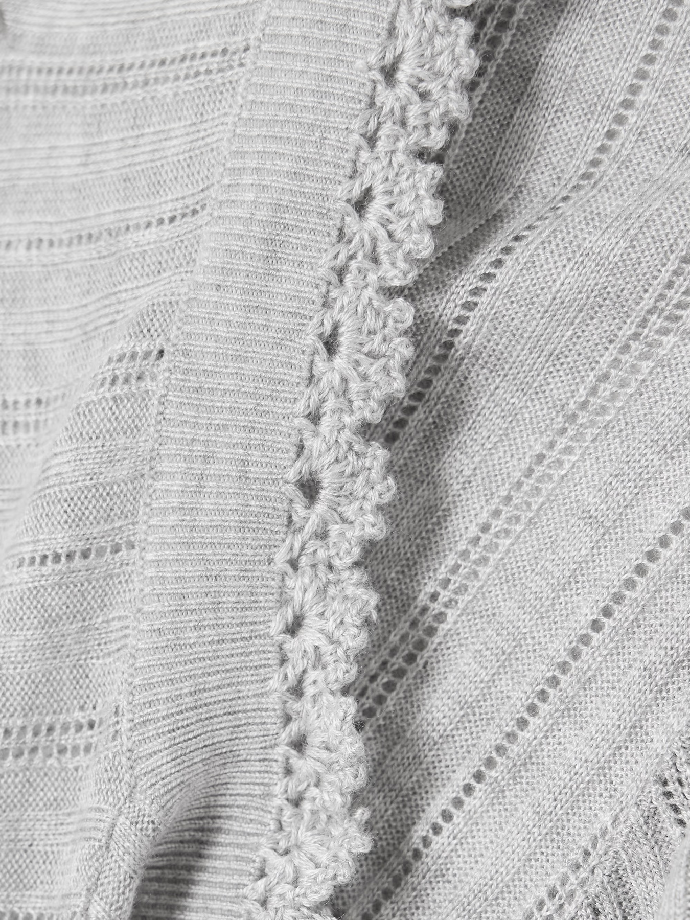 A versatile wardrobe staple, the Gemma Top is crafted from a lightweight pointelle knit. Its subtle openwork texture lends an airy elegance, while the slim silhouette makes it ideal for layering or wearing alone. Gently puffed sleeves add a soft, romantic touch, and handmade crochet trims complete the piece with artisanal detail.