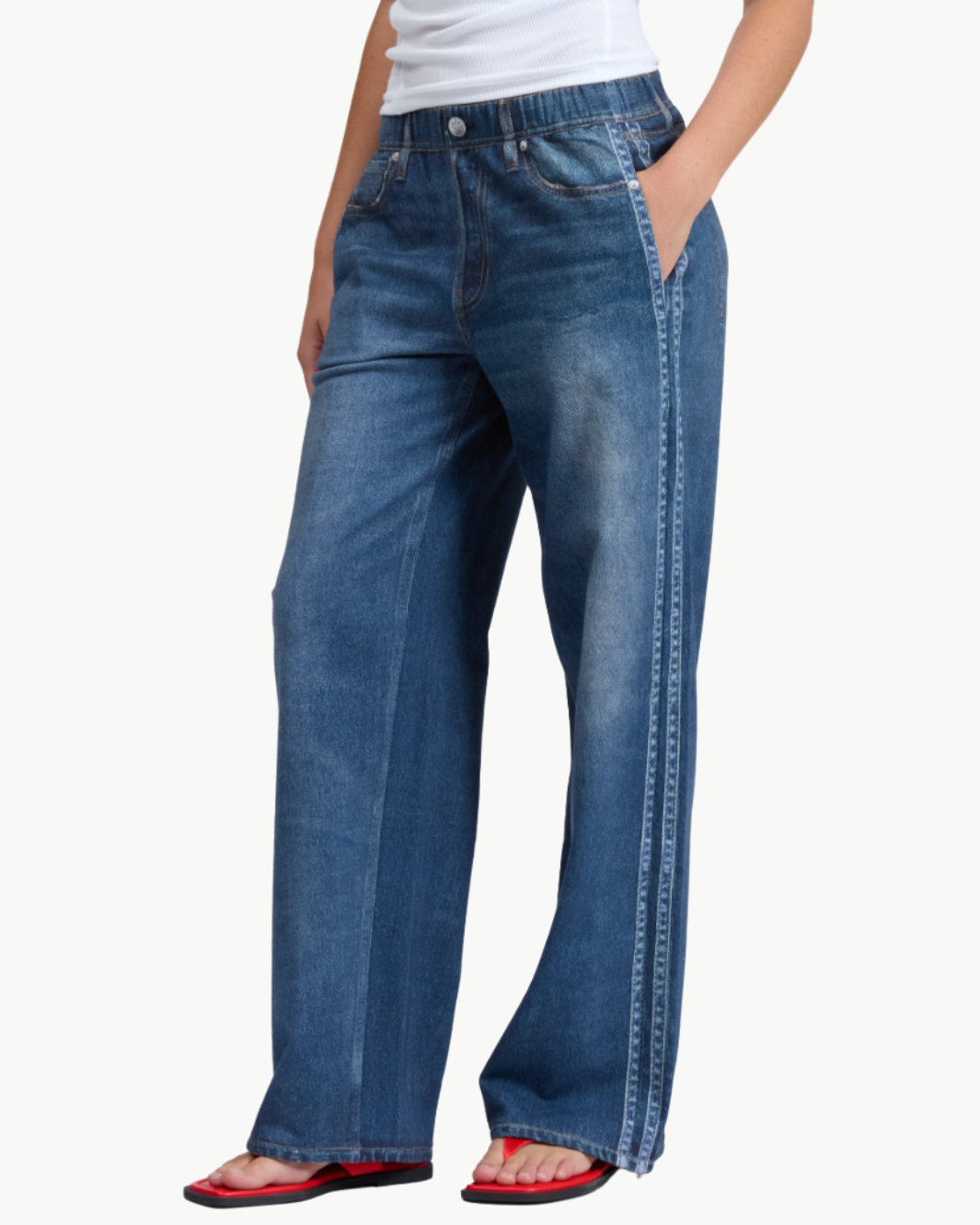 The Miramar Track Pant redefines casual style with a playful twist on sportswear. Designed with the hyperreal look of lived-in denim, this limited-edition piece combines effortless comfort with a bold, athletic edge. Crafted from ultra-soft cotton and printed using the signature Miramar technique, it features vibrant side stripes, an easy pull-on waistband, and hidden side-seam pockets—balancing laid-back wearability with striking visual detail.