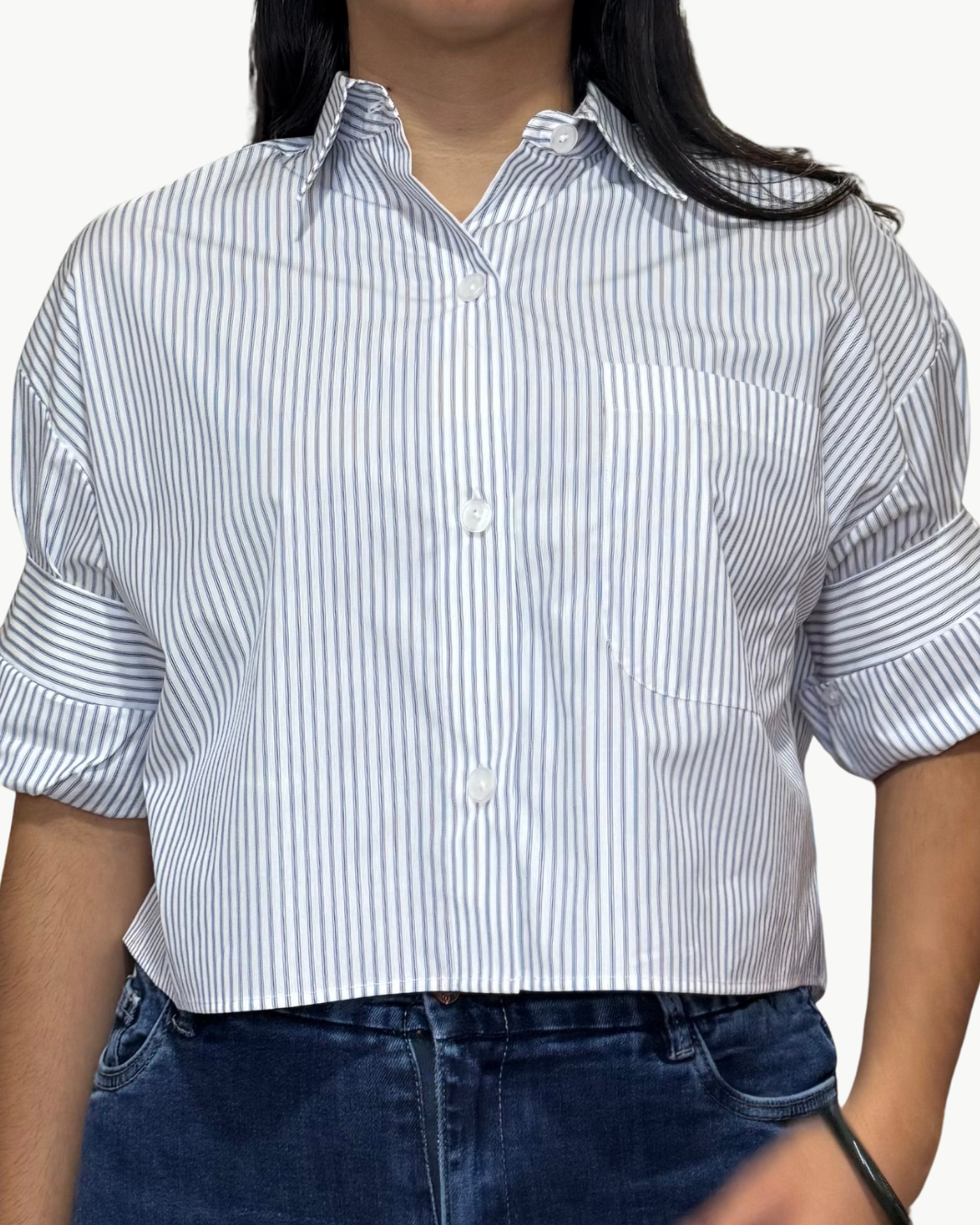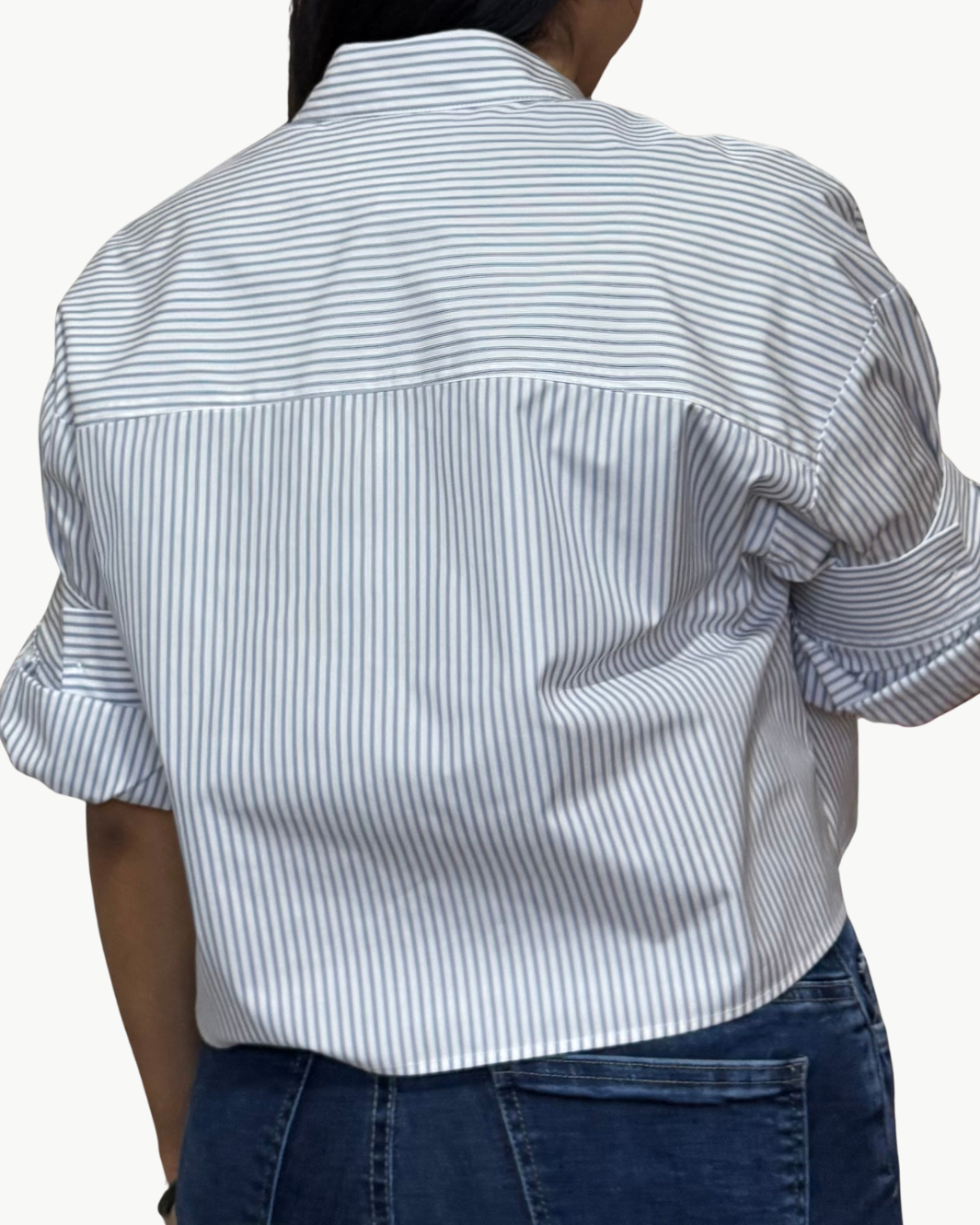 A fresh spin on the classic button-down, the Next Ex is cropped and cut in bold striped Italian cotton shirting for a statement look. Designed in a boxy silhouette, it features a chest patch pocket, spread collar, and signature double roll button cuffs for a touch of modern tailoring. Effortlessly chic and endlessly versatile, it’s the perfect warm-weather staple.