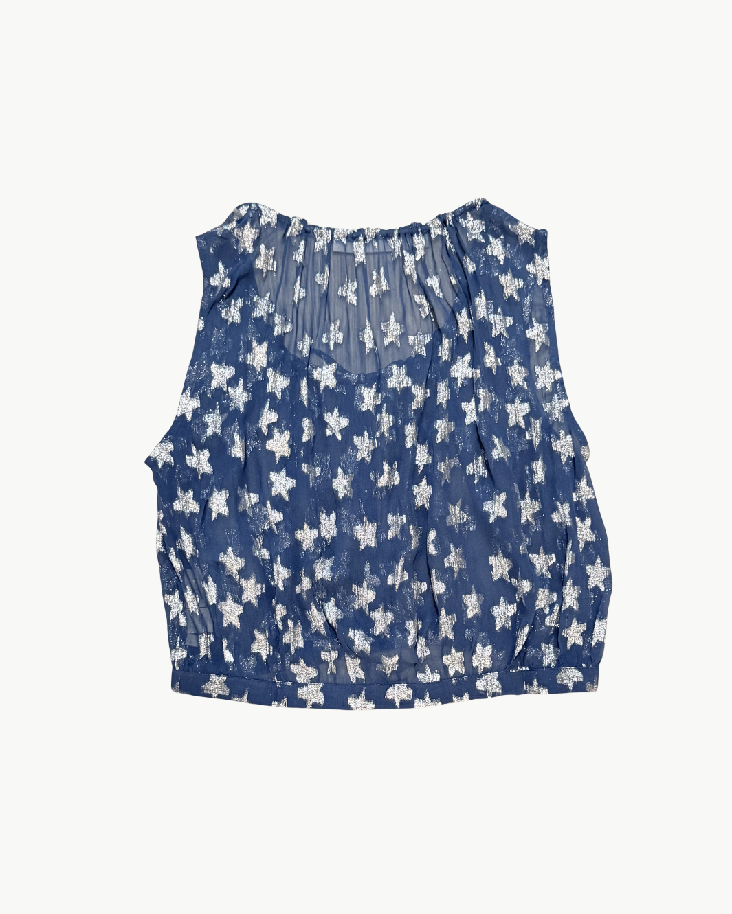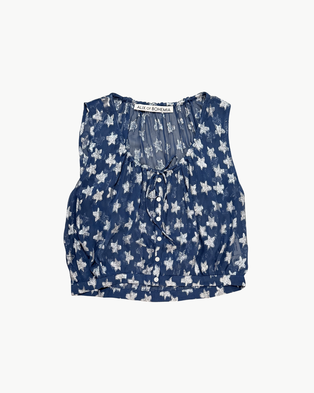 The Nova Starlite Shirt brings soft shimmer and airy movement to an effortlessly feminine silhouette. Crafted from lightweight viscose-chiffon, this blouse is adorned with metallic fil-coupé stars that catch the light with subtle sparkle. A gathered neckline with adjustable drawstring ties adds delicate shape, while the button-front design keeps the look relaxed and versatile.