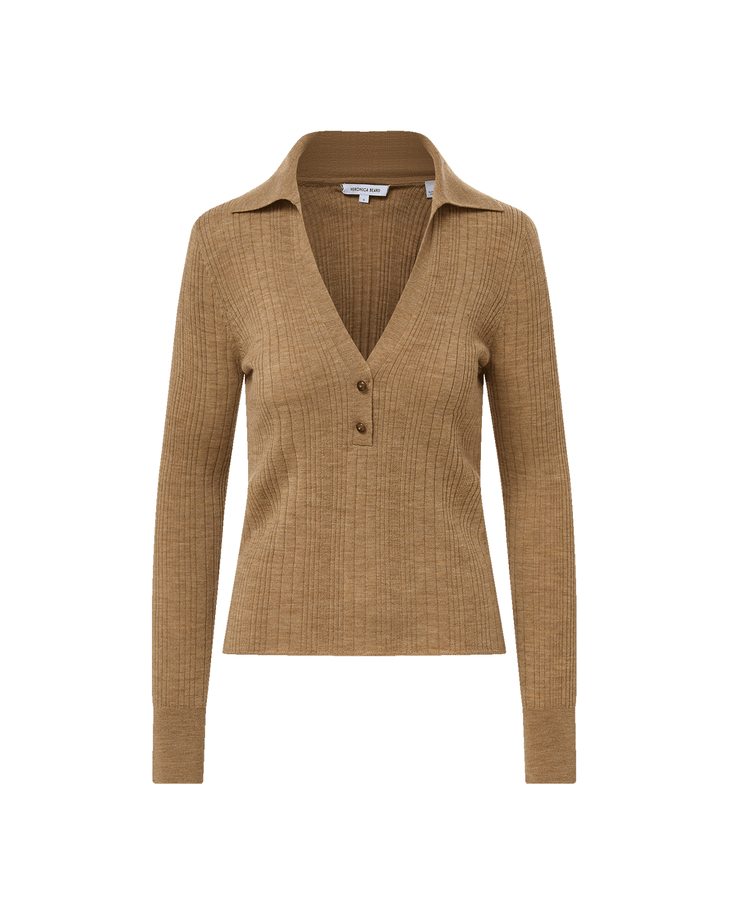 The Rouni Merino Wool Pullover is a timeless knit designed with a slim, body-skimming silhouette and refined detailing. Crafted from soft Italian merino wool, it features subtle ribbing throughout and a collared split-button neckline that adds a polished, tailored touch. Versatile and effortless, this long-sleeve pullover layers seamlessly or tucks neatly into denim and skirts alike.