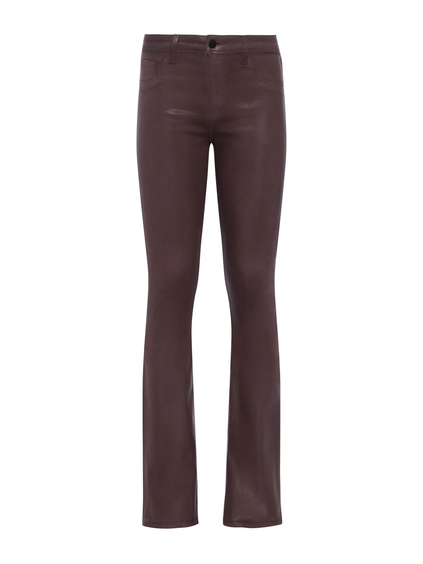 The Selma Coated Bootcut Jean delivers sleek sophistication with a modern edge. Designed in L’AGENCE’s signature leather-alternative coated denim, this slim bootcut silhouette contours through the hips and knees before subtly flaring at the hem. The contoured waistband flatters the natural waist while offering a smooth, secure fit. Now reimagined in rich chocolate brown for a timeless, versatile finish.
