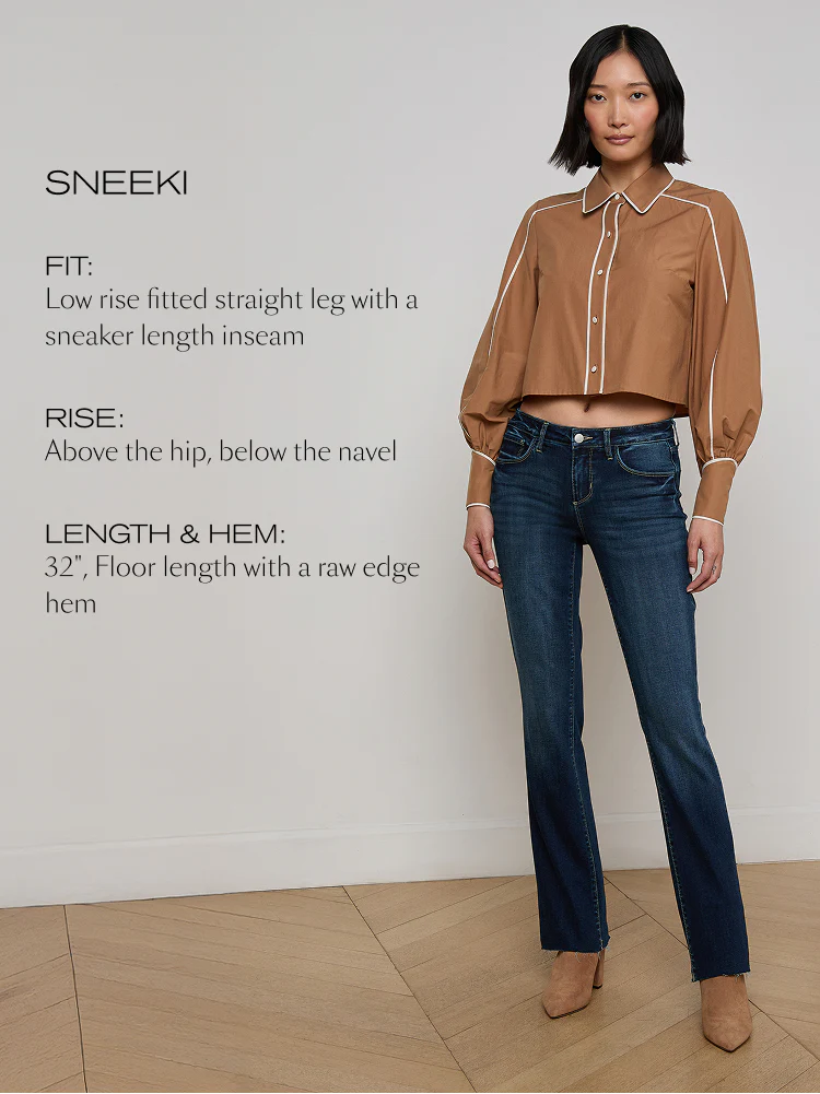 Effortlessly sexy yet endlessly wearable, the Sneeki is your go-to low-rise jean. Designed with a waistband that sits securely at the hip, this straight-leg silhouette is crafted in an aged dark wash with super stretch denim for all-day comfort and ease.