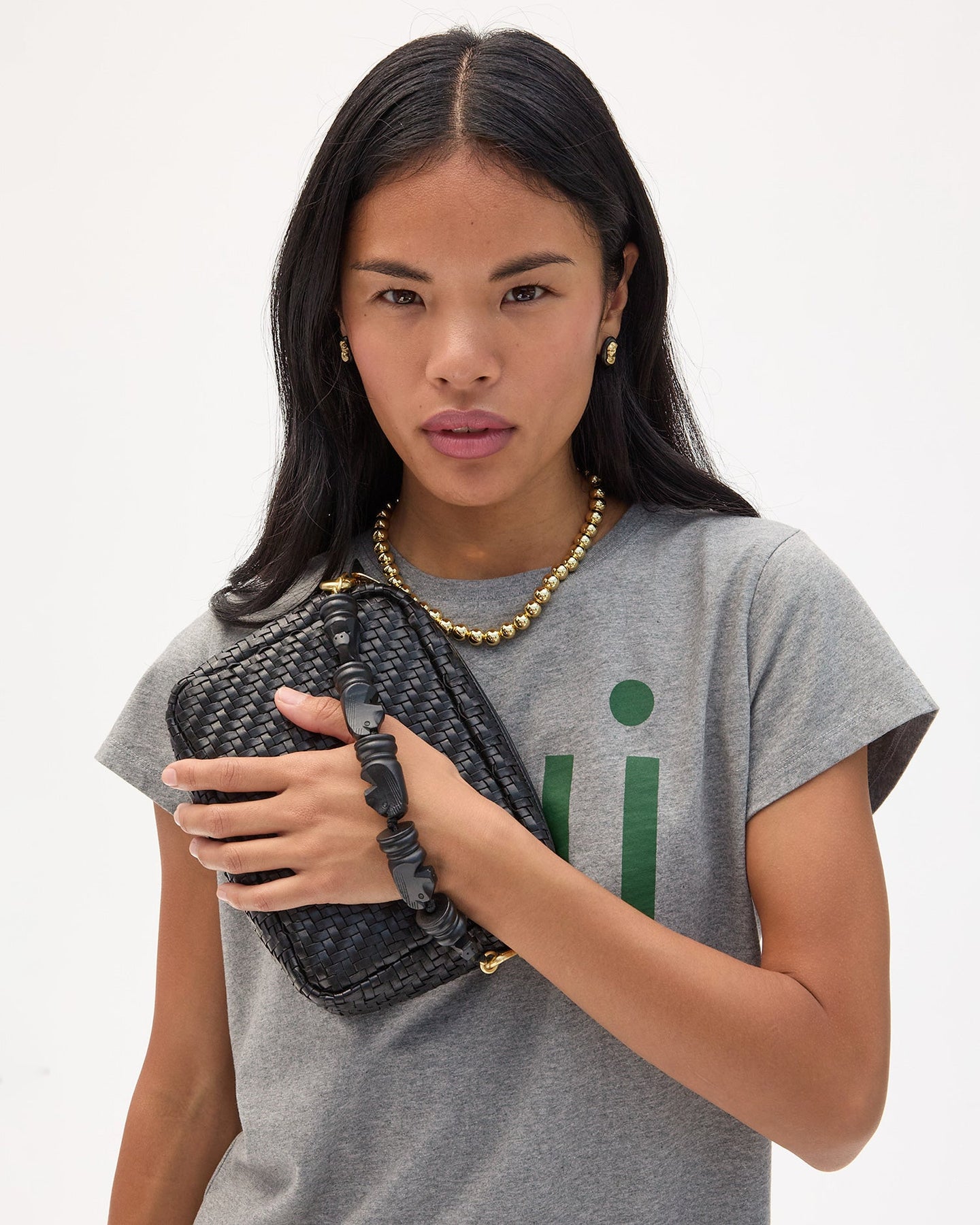 The Top Handle Strap brings a statement twist to any Clare V bag. Designed with a mix of wood, brass, zinc alloy, and poly cord, it’s part charm, part handle — and all personality. Attach it to any bag with D-rings for an instant upgrade.